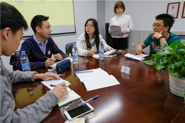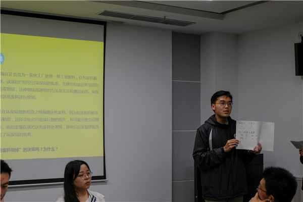 团队赛首轮,选手们通过抽签分成三个小组,各组就不同话题进行半小时的无领导小组讨论,随后各小组各派出一名代表对本组的讨论结果进行了陈述。通过该环节,评委们着重考察了选手们的问题解决和团队合作能力。