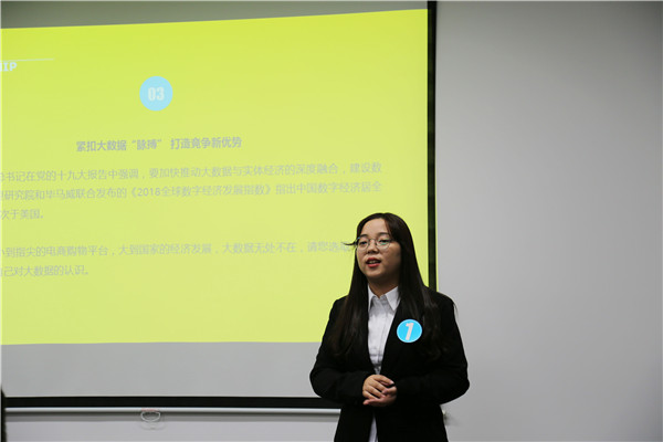在决赛中,五名晋级决赛的选手按照顺序,依次进行了个人展示和即兴演讲。在个人展示环节中,每名选手各自展现了自己在基础学业、科研科创、学生工作、志愿公益等方面的丰富经历和突出成绩。即兴演讲环节中,选手们针对“大数据”“网民素质”等热点话题发表了自己的观点,并回答了评委们的提问。