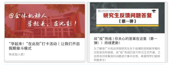 学院关心关注学生学习效果,及时了解各位同学在学习中的困难和问题,组织班主任、兼职思政教师每周随堂听课3次并及时反馈,重点关注课堂教学情况和所带学生出勤情况,实现公共基础课和专业课听课全覆盖。教务办与学工办联动,召开低年级本科生在线年级大会,激励同学们“停课不停学,居家不放松”。梳理排摸学业困难学生数据,在线召开本科生思政专题例会讨论学业帮扶方案,开通本科生“ME难题盒子”在线问答平台,开展在线学业指导、线上学术报告讲座和学术交流沙龙,从学习、科研、生活等方面分享居家学习经验和效果,营造全院学生在线学习的良好氛围。此外,学院还开通战“疫”热线,收集学生的担忧和疑惑,第一时间给予权威答复。
