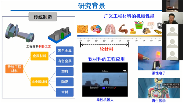 浙江大学机械工程学院尹俊研究员做题为“生物软材料增材制造机理及应用”的报告,从生物软材料制备工艺及成形机理,生物软材料增材制造中的科学问题以及应用案例等方面介绍了现有研究成果。