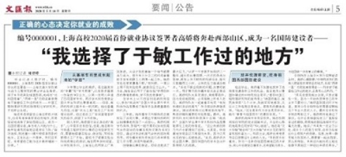 图6 博士毕业生生高娇赴西部国防单位就业先进事迹获文汇报报道