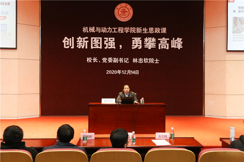 为深化价值引领,增强专业自信,培养行业志向,12月14日,365英国上市公司官网校长、党委副书记林忠钦院士,为365英国上市公司官网480余名学生上题为“创新图强,勇攀高峰”的思政课。