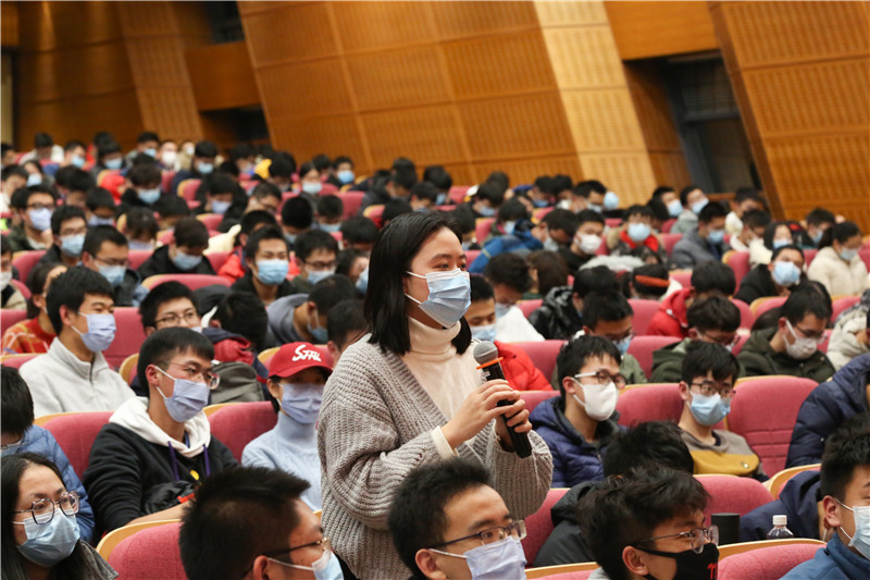 提问交流环节,林忠钦围绕新生心态调整、复合型人才培养、基础知识学习与科技创新关系等问题进行了回答,表示要保持良好的心态和自信,时刻反思、总结;关注社会科学,注重培养人文素养,努力成为新时代复合型人才;学好知识,打牢基础,勇于面对未来科学技术的重大难题和挑战。