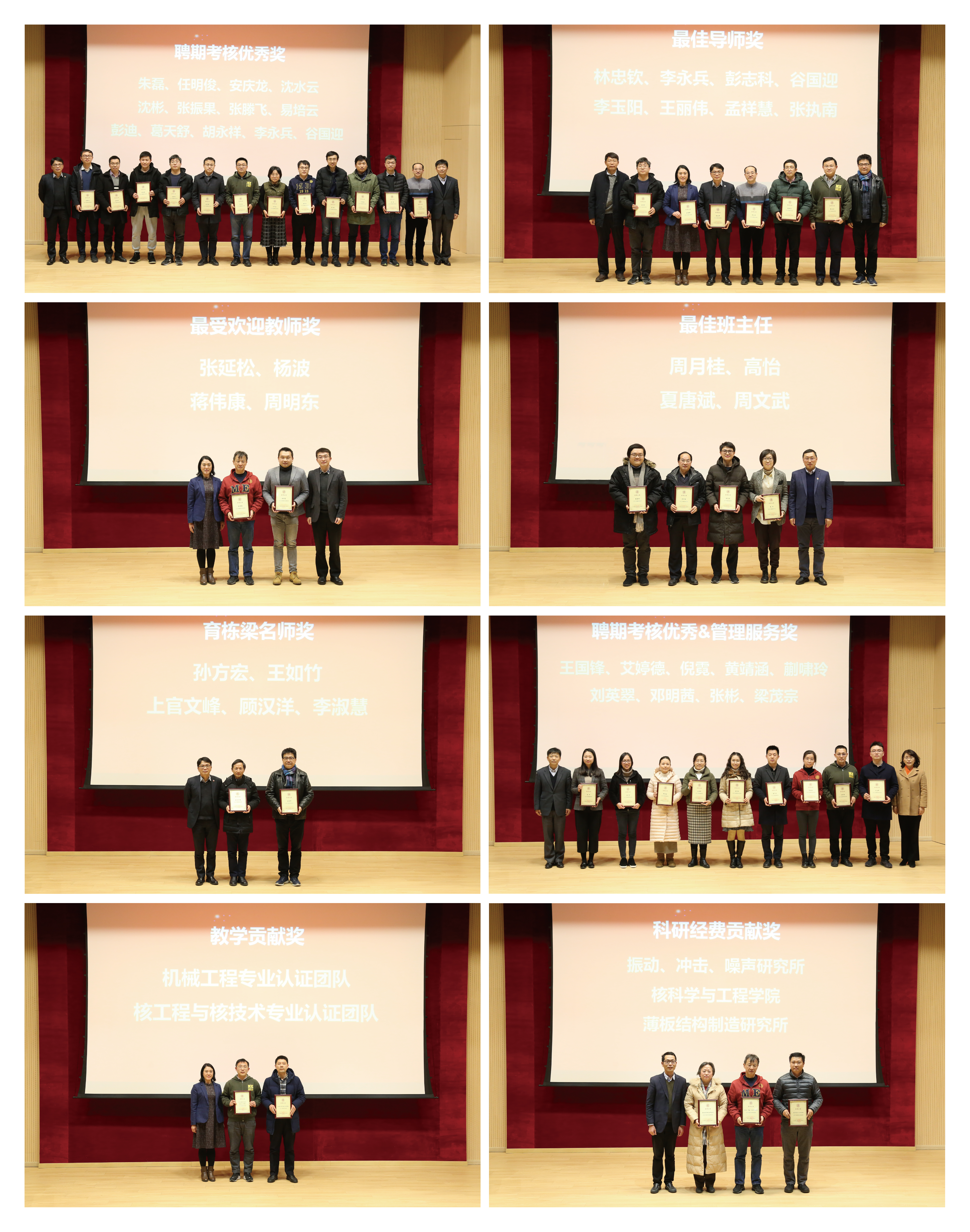 大会表彰2020年度聘期考核优秀、最受欢迎教师、最佳导师、最佳班主任、育栋梁名师、管理服务、教学贡献奖、科研经费贡献奖共43人和5个团队。