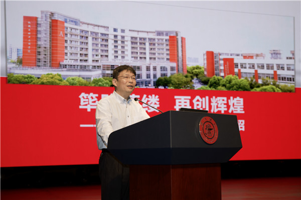 杜朝辉做院情介绍,强调学院“面向未来培养具有国家情怀、国际视野、创新意识、特色发展的领军人才”,寄语同学们志存高远、发奋图强,立足专业、探求真理,知难而进、追求卓越。
