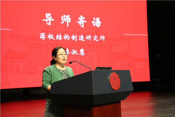 薄板结构制造研究所李淑慧教授作为导师代表发言,以“从做题到做事与做人”为主题,勉励同学们在科研之路上要有严谨的科学思维、发散的工程思维和横向思维,还要高度重视细节、端正态度。