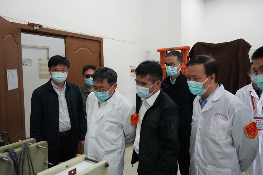 丁奎岭一行详细了解了综合能源楼实验室分布情况、安全风险点排查及管理情况,检查了实验设备管理使用、实验室日常管理及安全责任落实情况。检查过程中,丁奎岭听取了燃料电池研究所等在储能电池相关电催化机理、关键材料、电池系统等方面的基础与应用研究进展情况。