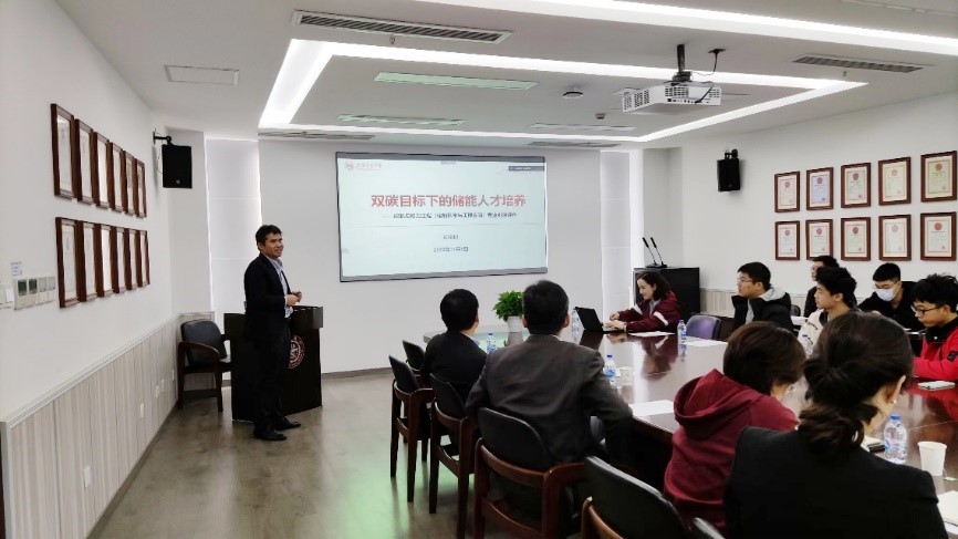 杜朝辉介绍了国家双碳目标以及新能源利用形势,指出学院以能源与动力、电气、材料、化学化工等优势学科为支撑,设立储能科学与工程专业方向,综合实力突出,希望大家努力学习,培养广泛兴趣,充分利用学院的优势资源,成为引领储能产业发展的跨学科、复合型、创新型卓越工程技术人才。