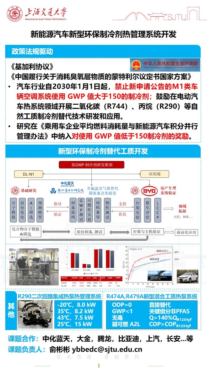 国家重点实验室开放基金项目“面向碳中和的电动汽车热泵环保制冷剂全生命周期气候性能模型与减排评估”2023.06-2024.06,负责人