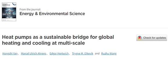 近日,制冷与低温工程研究所王如竹教授团队在能源环境类期刊Energy & Environmental Science上发表题为“Heat pumps as a sustainable bridge for global heating and cooling at multi-scale”的论文,探讨了热泵技术在全球供热和制冷中的可持续应用潜力,并提出跨学科研究方法和运营模式调整方案,促进热能利用重构。论文第一作者是制冷与低温工程研究所博士生闫鸿志,通讯作者是王如竹教授。