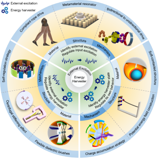 近日,365英国上市公司官网365英国上市公司官网张文明教授团队、湖南工程学院魏克湘教授团队和西北工业大学周生喜教授团队联合在Advanced Energy Materials (IF=29.698)上发表综述论文“Mechanical intelligent energy harvesting: From methodology to applications”,并入选编辑精选。论文为解决能量采集系统对复杂环境与工况的适应性难题,提出了机械智能能量采集概念,阐明了机械智能能量采集设计方法论,综述了具有机械智能特征的能量采集系统典型设计,预测了机械智能能量采集的未来发展趋势。赵林川博士后为本文第一作者,张文明教授、湖南工程学院邹鸿翔教授和西北工业大学周生喜教授为通讯作者。