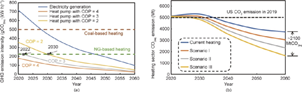 尽管热泵具备明显的碳减排优势和长期碳减排潜力,目前热泵的市场份额仍然很低,其原因既有技术经济层面,也有社会政策因素。关于技术经济问题,热泵的初始投资通常是其它供热设施的数倍,高昂的初始投资导致投资回报期长。在社会政策问题上,目前电力系统碳减排所受到的关注,远超过供热设施的电气化,而热泵的最新进展尚未完全纳入大部分关于碳减排途径的研究中。应当充分认识到,供热设施的运行寿命通常设计为15年甚至20年,因此需要把握好在2060 年碳中和节点前仅有的几次供热设备更换窗口期,进一步推进热泵的使用。
