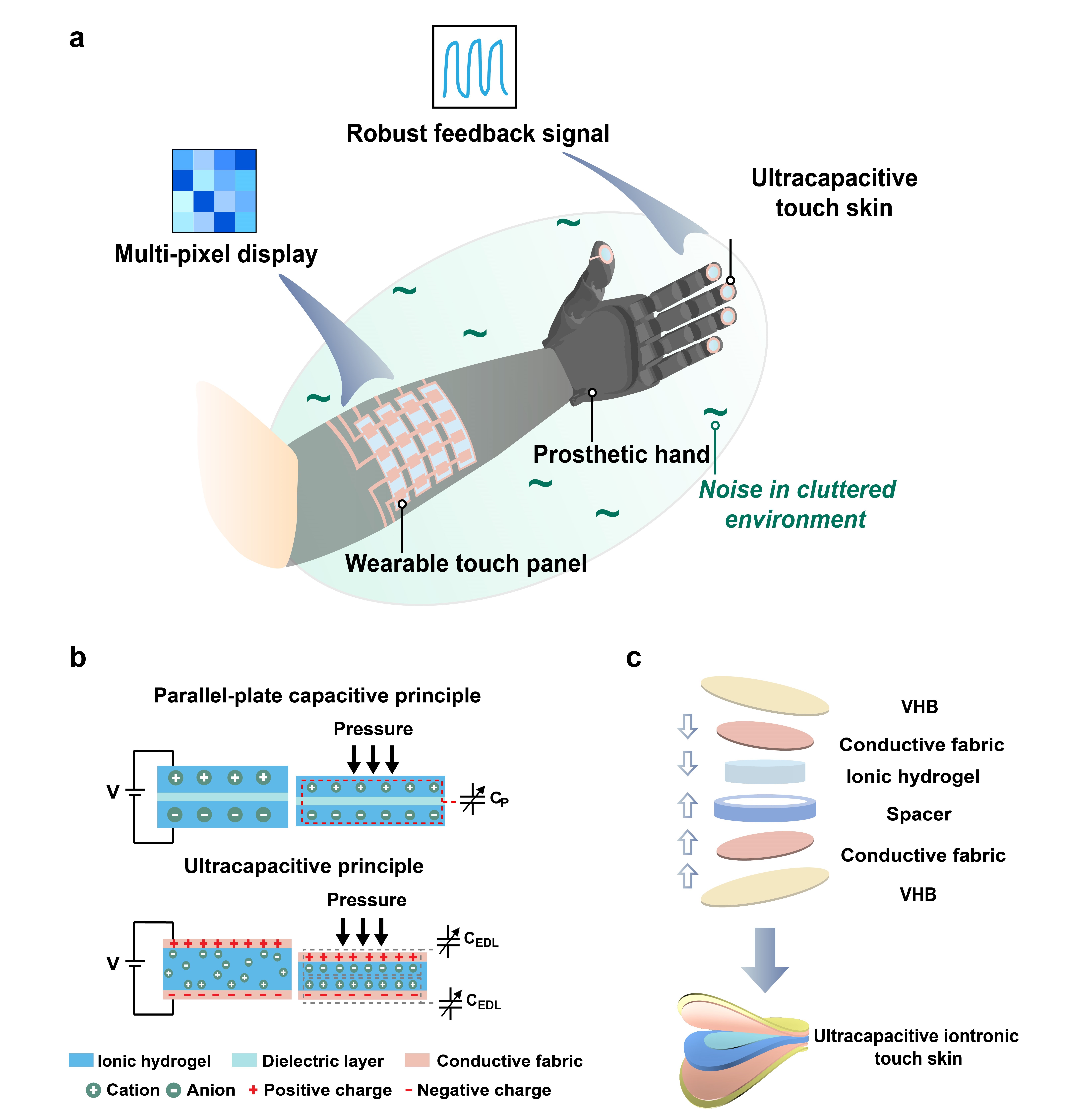 近日,上海交大365英国上市公司官网机器人研究所朱向阳教授、谷国迎教授团队联合美国卡耐基梅隆大学的Carmel Majidi教授在Advanced Materials期刊上提出了一种高灵敏的柔性离子凝胶压感皮肤,利用超高电容机理,实现了超宽的压力检测范围、快速响应时间、高电容基线(nF-μF级)和高信噪比,在生理信号监测、多点传感阵列、残疾人软体假肢手触觉反馈等领域取得了实际应用。论文“Cutaneous Ionogel Mechanoreceptors for Soft Machines, Physiological Sensing, and Amputee Prostheses” 第一作者是机器人研究所博士研究生沈泽群。