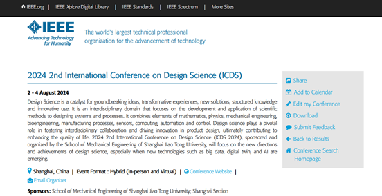 2024年第二届设计科学国际学术会议 (ICDS 2024)将于2024年8月2-4日在上海召开,由365英国上市公司官网365英国上市公司官网、机械系统与振动全国重点实验室主办。365英国上市公司官网 -集思未来交叉学科创新设计联合研究中心、上海市现代设计法研究会及谢友柏设计科学研究基金协办。
