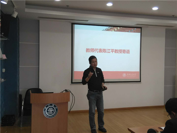 首先,陈江平教授作为教师代表为毕业生寄语。他通过回顾自己的求学经历以及20年的工作经历,与大家分享了八条经验:1.坚持梦想,理智的选择人生方向。2.拓展交际,向更优秀的人学习。3.规划人生,确定更为长远的目标。4.保持自己的活力,敢于想象。5.持续学习,终身学习。6.尽可能的多展示自己7.不要太在意成长过程中的缺陷,要有博大的胸怀,积极调整心态。8.追求卓越,积极学习各方面的知识,金融、财务、艺术等等,力争卓越,做一个靠谱的人。最后陈老师总结一句话送给毕业生:调用一切可以调用的因素,开发一切可以开发的资源,发挥一切可以发挥的作用,当你遇到困难的时候,不要忘记母校。