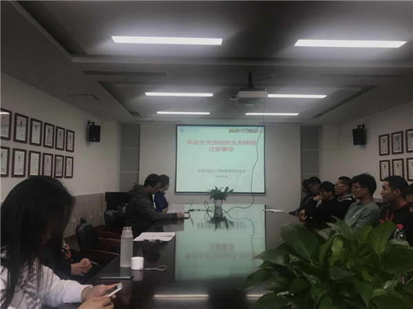 会议伊始,褚皓宇同学介绍了学校及学院有关毕业生的一些重要通知,提醒毕业生党组织关系转接及档案寄送等。毕业生的党组织关系转移需要用人单位和学校一起来配合完成,同时需要同学细致地完成每一个步骤。在接下来进行的远航教育环节,褚皓宇同学也为毕业生们送上了美好的祝福。