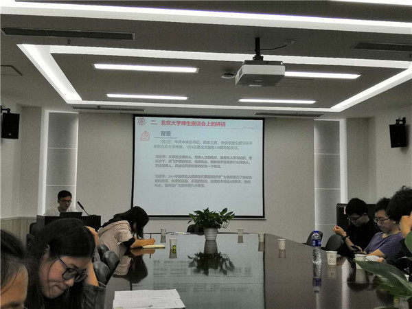 首先,陈震带领支部党员首先回顾了习近平总书记在马克思诞辰200周年的讲话,他指出要高度重视马克思主义,学习马克思的核心价值,并在新时代背景下坚持和发展马克思主义。随后,会议共同学习了习近平总书记在北京大学师生座谈会上发表的讲话,习近平总书记强调了大学是是青年人学习知识、增长才干、放飞梦想的地方,并对青年人提出了四点希望,即爱国、励志、求真和力行。陈震表示,每位同学尤其是党员同学都应努力奋斗、砥砺前行。