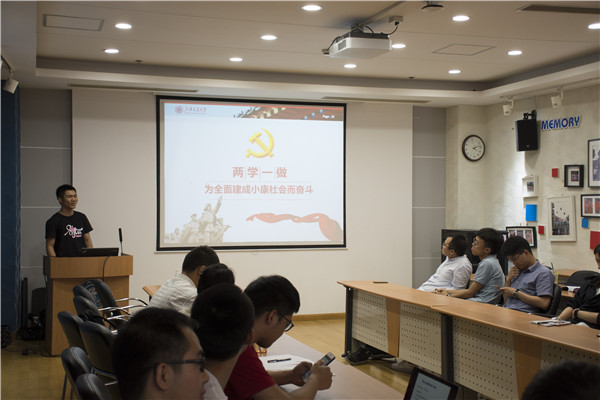 之后徐德辉又详细阐述了两学一做,为全面建成小康社会而奋斗。他介绍了全面建成小康社会的十大目标以及作为一名学生党员如何作一名合格的党员。他认为首先要怀理想,不忘初心,要有情怀,不要为了钱而转行;其次要强本领,牢记使命,要干一行爱一行;然后要敢担当,勇立潮头,作为一名交大的学生要有以天下为己任的霸气;最后他呼吁大家要笑口常开,积极乐观,多参加一些体育活动。