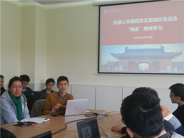 3月20日中午,机器人所研究生第四党支部在机械楼F207会议室召开“学习两会精神”主题组织生活会。支部指导老师郭莉及全体党员参加了会议,会议由支部书记袁锦春主持。