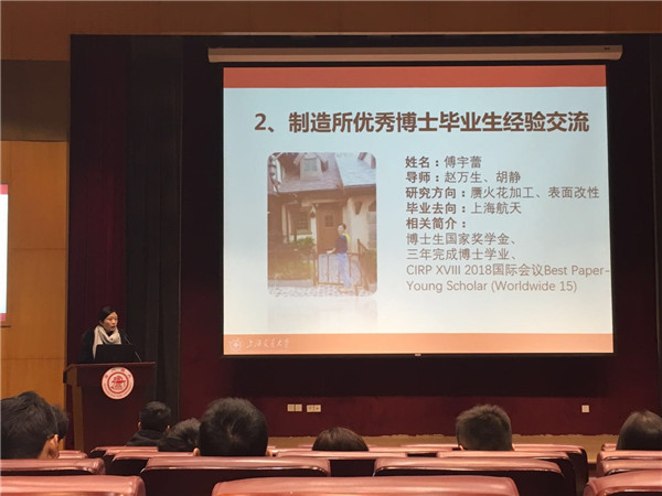 随后,两名优秀的毕业生代表16级博士生傅宇蕾、16级硕士生封得财分别与大家分享了自己学生生涯的经验。傅宇蕾结合自己的亲身经历,建议大家在科研上要做好时间规划,在实习过程中了解行业的实际面貌,从而找到自己合适的方向,做好职业规划。封得财认为,在学习科研的过程中需要早做准备,在面临选择时不要慌乱和迷茫,努力尝试做到不后悔,同时在忙碌学业之余也要注意锻炼、保护身体。