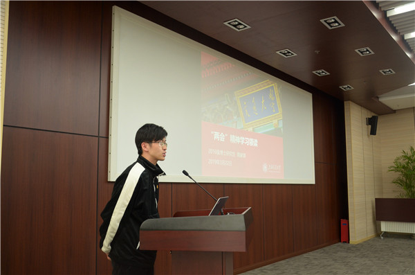 在学习“两会”精神环节,2016级博士研究生陶家琪结合自己的体会和感受,和同学一起学习今年“两会”的重要内容。陶家琪就今年“两会”内容,从全面依法治国、正风反腐、社会保障、教育改革、健康中国、互联网+政务服、住房制度、脱贫攻坚、收入分配、生态环保等十个热点内容进行了深入浅出的解读,并针对我们关系密切的上海科改25条进行了介绍。陶家琪的分享不仅向同学们传达了“两会”精神,更让我们认识到贯彻落实“两会”精神的重要意义。随后,各位党员进行了学习“两会”精神的交流讨论,分享了自己的想法。