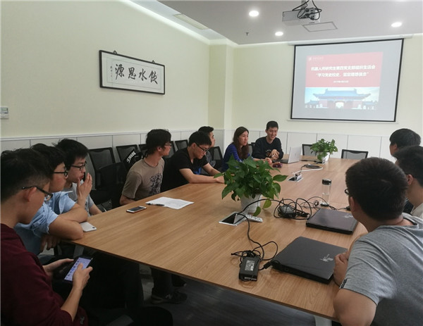 4月24日中午,机器人所研究生第四党支部在机械楼F206会议室召开“学习党史校史,坚定理想信念”主题组织生活会。支部指导老师郭莉及全体党员参加了会议,会议由支部书记袁锦春主持。