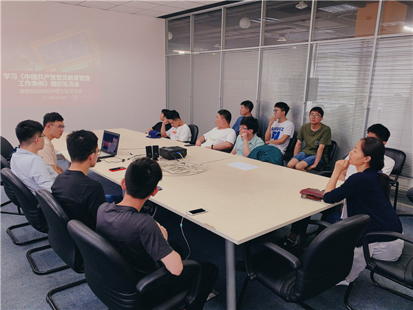 6月24日,薄板结构制造所硕士生党支部“学习《中国共产党党员教育管理工作条例》”专题组织生活会在机械楼D307会议室举行,支部指导老师陶晓红及支部成员出席会议,会议由支部书记赵航主持。