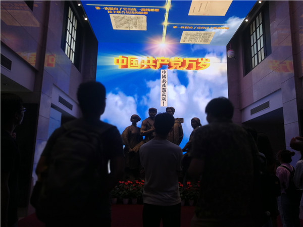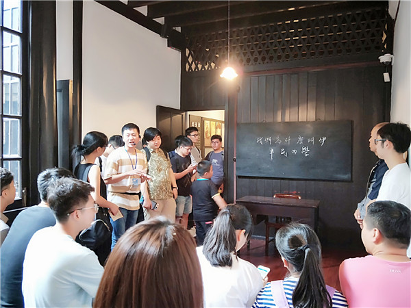 上海的夏天姗姗来迟,气温和焦灼的心情在七月底到达了高峰,匆忙的随着人群走进老成都北路7弄30号的老式石库门建筑,似乎是冷气也似乎是厚重的历史氛围,烦闷的心情骤然受到安抚。在纪念馆志愿讲解员的带领下,大家边参观边感触98年党的历史。这所举办了中国共产党第二次全国代表大会(简称“中共二大”)的会址,见证了党的民主革命纲领的提出,第一部党章的制定。大厅内播放着党的故事,历史不仅是历史,同学们聚精会神地聆听,仿佛不是参观者而是亲历者。
