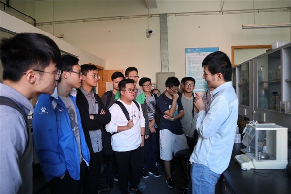 在机械C楼核化工及放射化学实验室,程杨热情接待了前来参观学习的同学们,对乏燃料后处理技术、高性能吸附材料研制等研究方向进行了介绍。程杨告诉同学们,核燃料后处理在国内需求很大,但仍未形成成熟的产业体系,未来将大有可为。