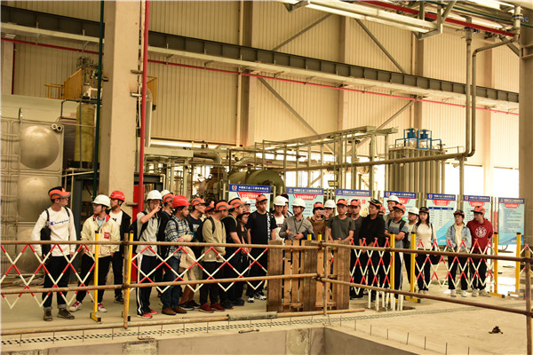 顾汉洋表示十分欢迎同学们来到临港实验基地,首先对参观过程中的安全问题进行了强调,随后带领同学们开始参观各个实验装置。临港实验基地内计划布置16台大型实验装置,其中包括国际热工参数最大的蒸汽发生器热态测试验证系统,国际领先热工参数的高温高压水通用试验平台,国内首个小堆综合实验装置平台等。