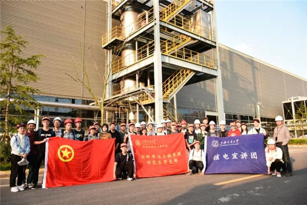 参观结束后,同学们在临港实验基地蒸汽发生器热态实验装置前合影留念,随后乘车返回学校。