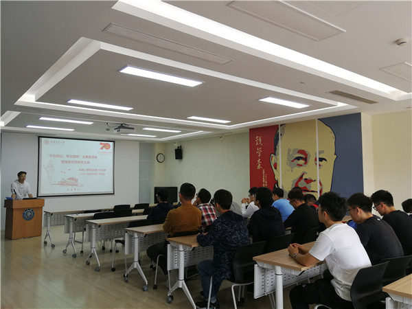 首先,王志永带领大家集中学习了习近平总书记纪念新中国成立70周年重要讲话精神,并由刘森森做全文领读分享。新中国成立70年以来,全国各族人民同心同德、艰苦奋斗,取得了令世界刮目相看的伟大成就。王志永谈到,新时代大学生要更加坚定地团结在党中央周围,始终坚持中国共产党的领导,要努力发挥所长,掌握科学文化知识,同心同德,把祖国的明天建设的更加美好,为实现中华民族的伟大复兴而不懈奋斗。