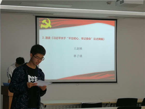 随后,王志永组织开展《习近平关于“不忘初心、牢记使命”论述摘编》学习心得交流活动。硕士新生王赵映表示,思维视野的广度、思想境界的高度,决定了自身能否克服各种困难,完成不可能完成的艰巨任务,作为学生党员要通过掌握马克思主义、掌握中国特色社会主义理论体系,通过理论与实践的统一和结合,通过更加思考如何适应时代,深刻把握世界历史发展的脉络,达到个人价值同国家发展紧密结合。博士研究生张宁斌表示,空谈不是爱国,要努力扎实做好自己当下的事情,仰望星空不忘脚踏实地,踏踏实实将爱国情感落实到细微之处。