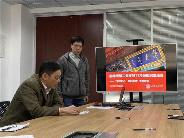 振动所研究生第二党支部于11月6日在B400会议室召开了主题为“不忘初心、牢记使命”的组织生活会,并开展了民主评议工作。支部指导老师阮海涛及全体党员参加了本次会议,会议由党支部书记么宇辉主持。