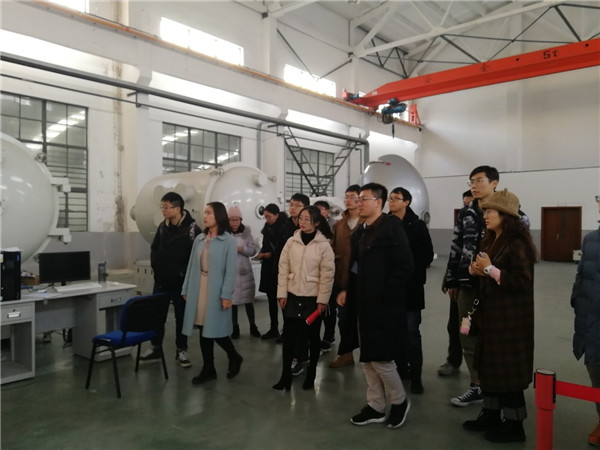 由于共行支部接待人数的限制,本次参观学习由制冷所研究生第一党支部的14位党员代表参加,真空事业部党支部党员同志向前来参观的代表团表示热烈欢迎,并带领一行人参观研究所。
