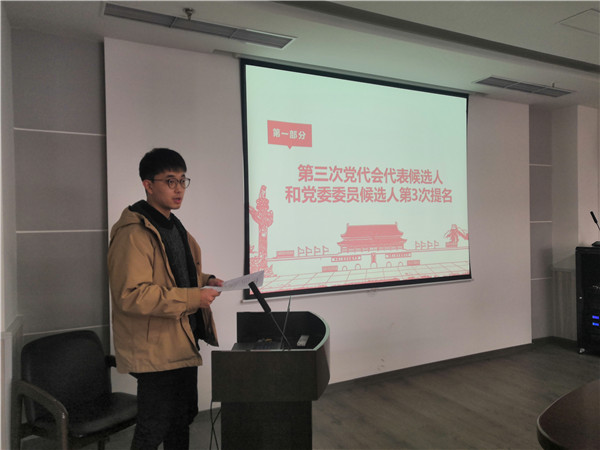 会议首先进行了学院第三次党代会党委委员提名和党代表提名的第3次会议(三下)相关工作,出席的36名正式党员进行投票。