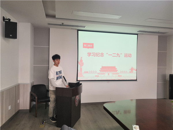 会议第二项议程是回顾“一二九”运动。支部宣传委员谢文达详细介绍了运动的背景、经过、运动的口号与精神。“一二九”运动公开揭露了日本帝国主义侵略中国,吞并华北的阴谋,打击了国民党政府的妥协投降政策,促进了中国人民的觉醒,它标志着中国人民抗日民主运动新高潮的到来。正如毛泽东所说,“一二九”运动是抗战动员的运动,是准备思想和干部的运动,是动员全民族的运动,有着重大的历史意义。在座党员团员深受鼓舞,纷纷表示要到基层和人民中去建功立业,让青春之花绽放在祖国最需要的地方。