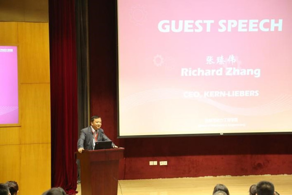 克恩-里伯斯的首席执行官张臻伟作为嘉宾代表从企业的角度表达了对校企合作毕业设计新模式的看法。毕业设计课程总负责教师陈璐具体介绍了学院推行的毕设改革创新模式,展示了本届毕业设计的企业资助、学生完成情况及取得的成果等内容,并介绍了下一届毕业设计初步规划。