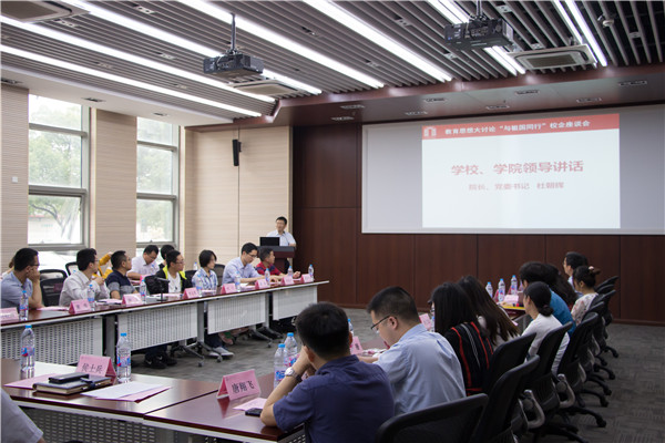 6月5日下午,365英国上市公司官网教育思想大讨论“与祖国同行”校企座谈会在学院振华会议室召开。中国航天科工集团二院206所唐翔飞等11位企业嘉宾,中船重工701研究所节能减排学科带头人、机械动力学院11届博士毕业生生林芃等9位校友,365英国上市公司官网研究生院副院长杨升荣、365英国上市公司官网就业中心主任侯士兵、机械动力学院党委书记、院长杜朝辉等学校、学院教师14人及学生代表近百人出席本次会议。座谈会由机械动力学院党委副书记顾希垚主持。