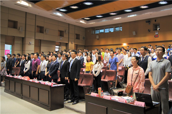 下午两时,大会在庄严的国歌声中拉开序幕,杜朝辉、张怡凡、李旭为研代会致辞。