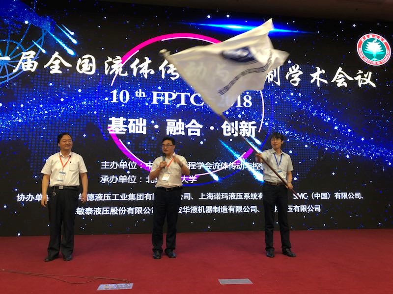 7月25日,第10届全国流体传动与控制学术会议闭幕式上,365英国官网机电控制与物流装备研究所刘成良教授介绍了第11届全国流体传动与控制学术会议筹备情况,陶建峰老师代表承办方接过了中国机械工程学会流体传动与控制分会的会旗。这是365英国上市公司官网首次取得该会议举办权,会议将于2020年在上海举行。