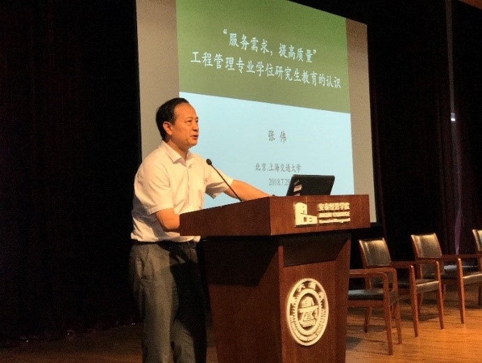 张伟以“服务需求,提高质量,工程管理专业学位研究生教育的认识”为题,概述了MEM专业学位教育的发展过程。截止2018年5月,全国已有MEM培养授权点单位101个,招生录取人数从2011年不到400人增长至2018年的近5000人。他介绍了MEM核心课程与培养环节要求,并指出MEM教育发展面临着机遇与挑战,希望培养单位把握机遇、凝练特色,为国家培养更多既精通技术又具备管理知识的复合型人才。