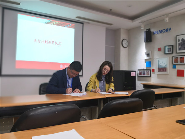 制冷所研究生第二党支部支书蔡一凡与八〇五所十六室党支部胡迪科进行“共行计划”签约仪式。