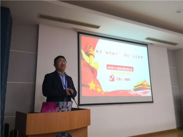 八〇五所十六室党支部支书胡迪科针对八〇五所十六室党支部,从支部成员情况,支部活动风采,支部荣誉奖励,支部工作奋斗等多个方面进行了介绍,充分的展示了八〇五所十六室党支部是一个有活力,有能力,有担当,有新意的党支部。