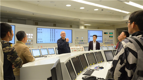 离开应急指挥中心后,交大师生与华东站一行先后参观了秦山核电一期30万KW和秦山核电一期扩建工程100万KW模拟机培训中心,秦山核电运行培训处副处长刘全友为大家讲解了两代核电厂的差异、主控室人员配备情况以及核电操作员的严格考核等同学们感兴趣的话题。在刘处长的介绍下,同学们了解了主控室的人员配备以及轮换机制,堆操、机操等不同岗位的职能,学习了主控室各个控制部分的作用。此外,刘处长还向我们详细介绍了成为一名合格的操作员所要经历的严格考核,他谈到操作员在进行资格考试的时候,要在一天内经历长达8个小时高强度的考核,最终成功通过的成员才能够获得操作员执照,进行真正的核电站操作。同学们纷纷感慨核电操作员执照的来之不易,也对核电站对安全问题的重视有了更深刻的认识。30年来,秦山核电机组从30万KW到100万KW,主控室的设备也从最开始的以手动控制为主到现在的智能化控制为主,这些都离不开中国核电人的一代又一代的艰苦奋斗,无私奉献。