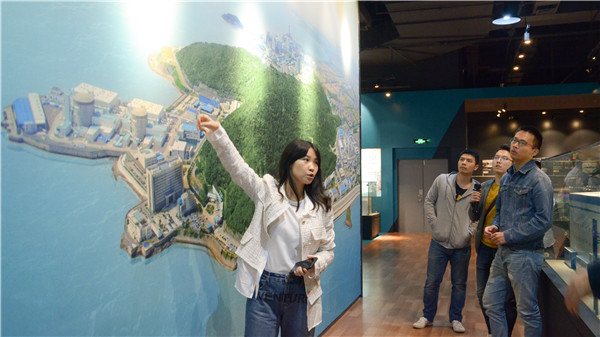 最后,上海交大师生与华东监督站一行来到了此次活动的最后一站——核电科技馆,核电科技馆于2017年9月正式对外开放。科技馆分为三层,共13个展厅。一层以“核能发展”为主题,展示中国核电的发展之路;二层以“核能与安全”为主题,展示核电原理与安全文化;三层以“核能与生活”为主题,展示核能基本原理及核能基础知识。同学们在丰富的展厅中穿梭,了解中国核电的起步,国内核电现状以及未来的核电发展前景,同时也在了解海盐的历史文化,发展历程。在参观期间,同学们积极同讲解员互动提问,欢声笑语在展厅里回荡。