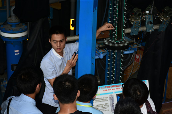 程怀远具体地介绍了实验室均匀腐蚀,应力腐蚀,微动磨损等相关设备的简单原理,同学们对不同设备的用处、数据如何传输、如何控制高温水条件十分有兴趣,现场气氛越来越活跃。