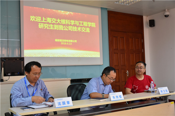 14日上午,实践团在福清核电培训中心会议室,开展了高校、企业、监管单位三方党支部共建与交大校友座谈活动。