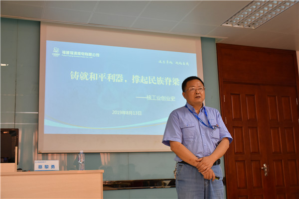 13日上午,福清核电人力资源处处长蔡黎勇向实践团介绍了题为“铸就和平利器,撑起民族脊梁”的中国核工业创业史,创业史讲述了老一辈核工业人敢拼敢闯,舍身奉献的感人事迹,同时勉励同学们接过历史的接力棒,把中国核工业继续推向世界先进行列。