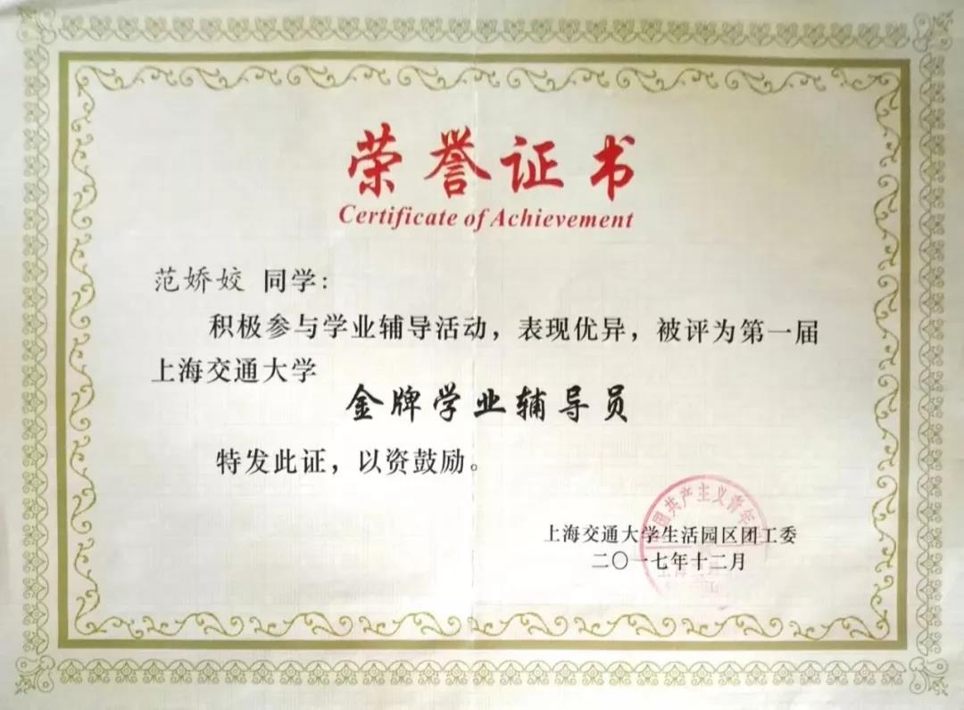 范娇姣的求学之路并不是那么简单。在人才济济的交大,她的成绩起先并不占优,甚至在第一学期的期末还是班里的倒数。不甘于此的她,晨起诵读夜用功、在图书馆中奋斗朝夕、自习室里的奋笔疾书成为了她的日常,寝室楼中与同学的深夜讨论成为了她的习惯。三载光阴荏苒,她在求学道路上不断进步,荣获国家奖学金、唐立新奖学金,被评为“2018年度校励志典型人物”,成功实现逆袭。